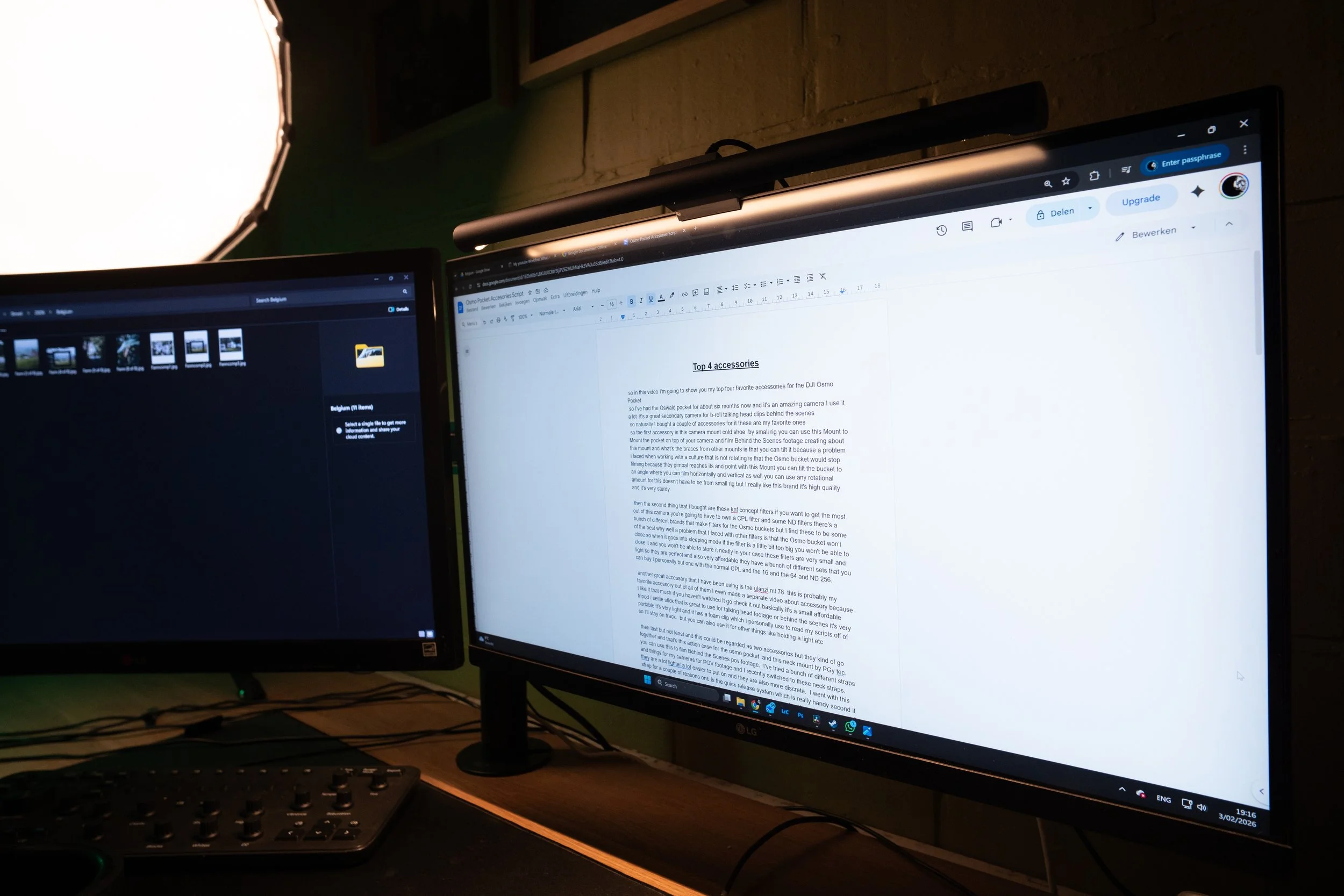 I set up my camera and lights, and place my script next to the lens on a tripod. I usually keep it open in Google Docs so I can also view it on my phone.